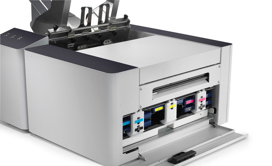 Ispisna glava pokriva 222mm cijele površine ispisa. Za razliku od oubičajenih printera, sistem radi sa fiksnom ispisnom glavom, a materijal linearno putuje ispod nje, što omogučava ispis brzinom do 152mm/s na rezoluciji 1600 x 1600dpi, što znaći izlaznu brzinu do 7,500 DL kuverata na sat.