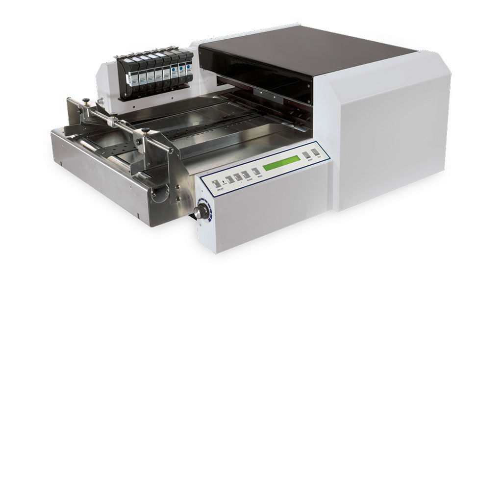 Zasebno podesive ispisne glave omogučuju istovremeni ispis adrese, loga, povratne adrese, barkoda ili grafike. Podesivi transportni remeni osiguravaju ispravnu poziciju materijala za precizan ispis.